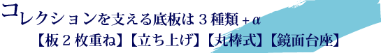 ■底板は形態4種類から選択が可能です。全ての底板にはケース本体が動いてしまわないようにズレ防止用の処理がされております。